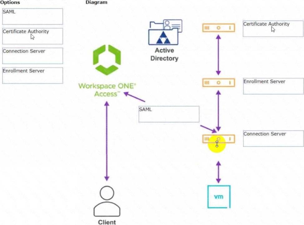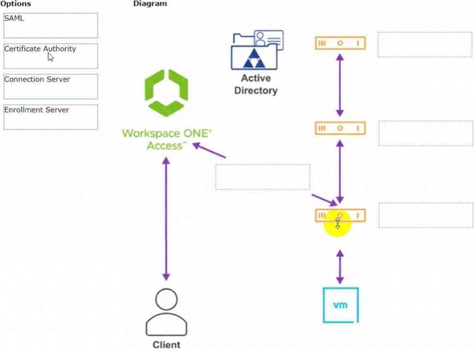 Drag and drop the correct options to build a Simple True 5SO Architecture on the left into the diagram on the right.