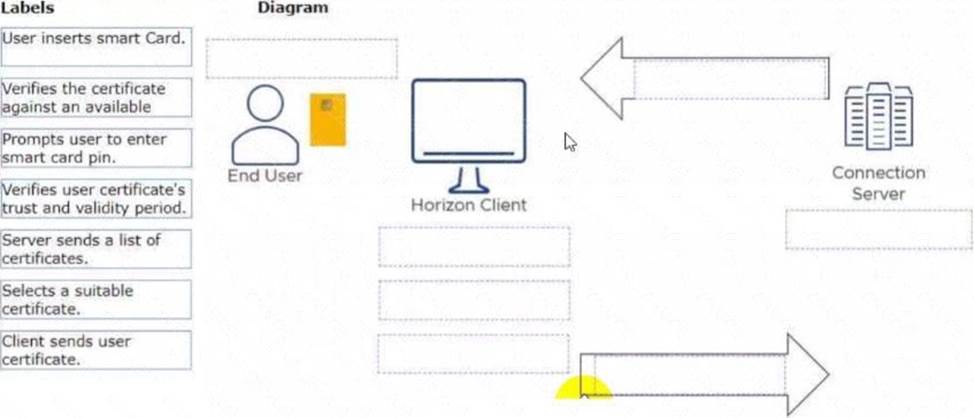 Drag and drop the labels on the left for the authentication flow for smart cards into the correct location in the diagram on the right.
