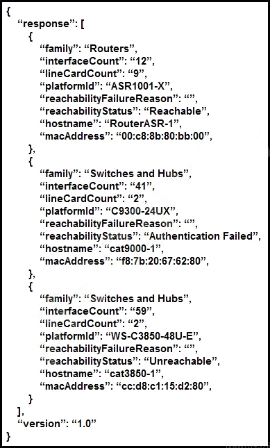 What does the cisco DNA REST response indicate?
